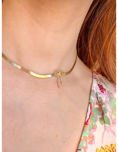 Chocker in argento con bagno in oro giallo con fettuccia piatta e fiocchetto applicato.