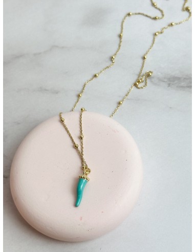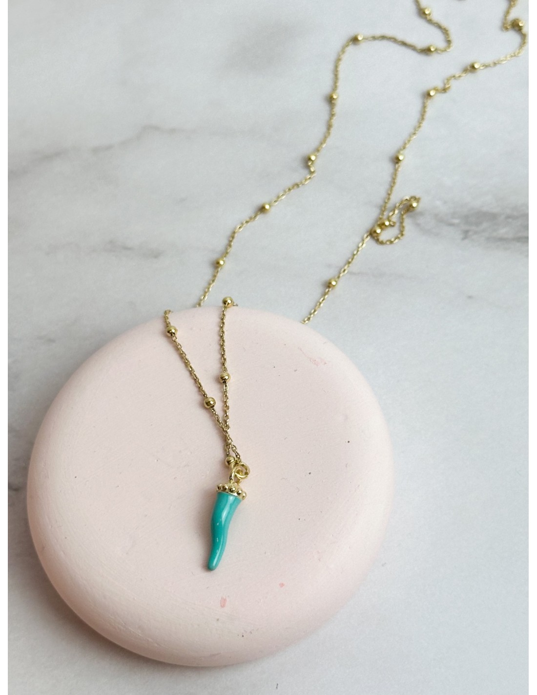 Collana girocollo in argento placcata in oro giallo con cornino colorato
