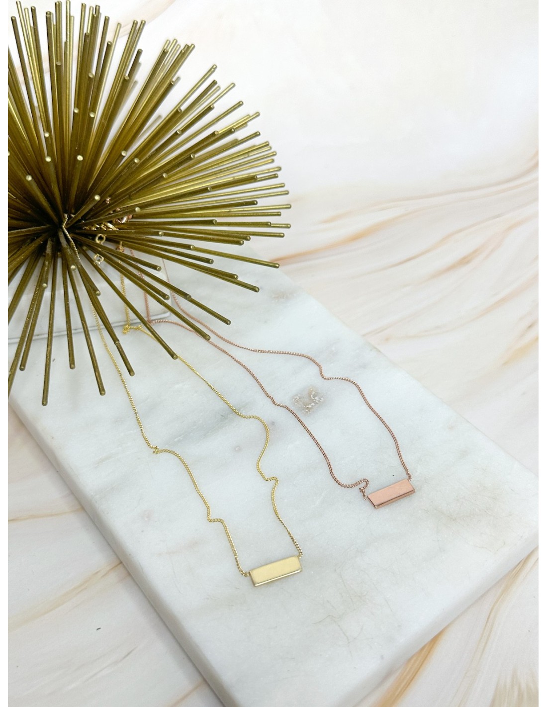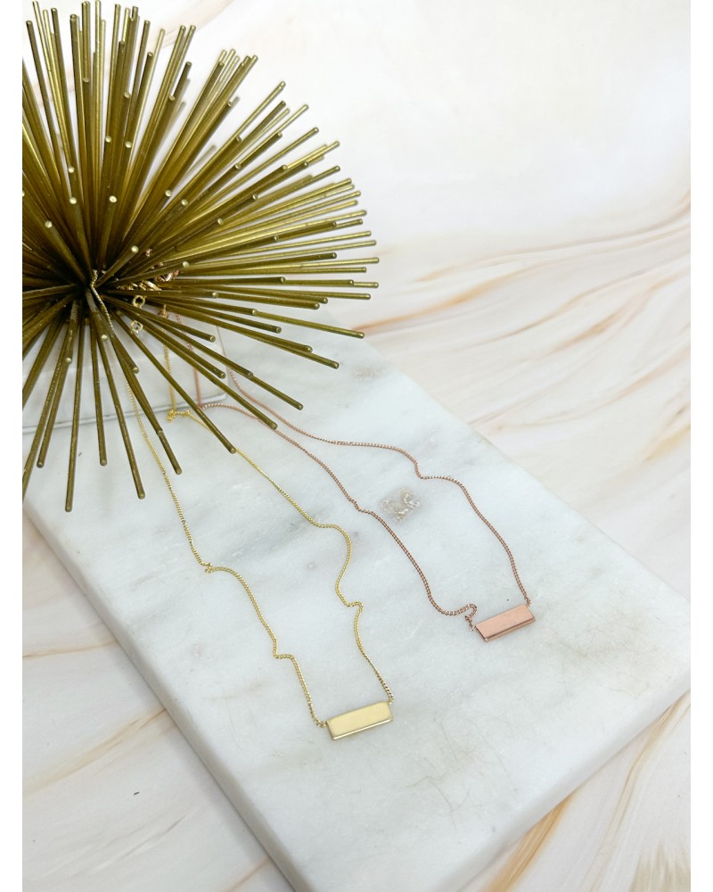 Collana semplice ma al contempo d'effetto con piastrina piatta rettangolare.