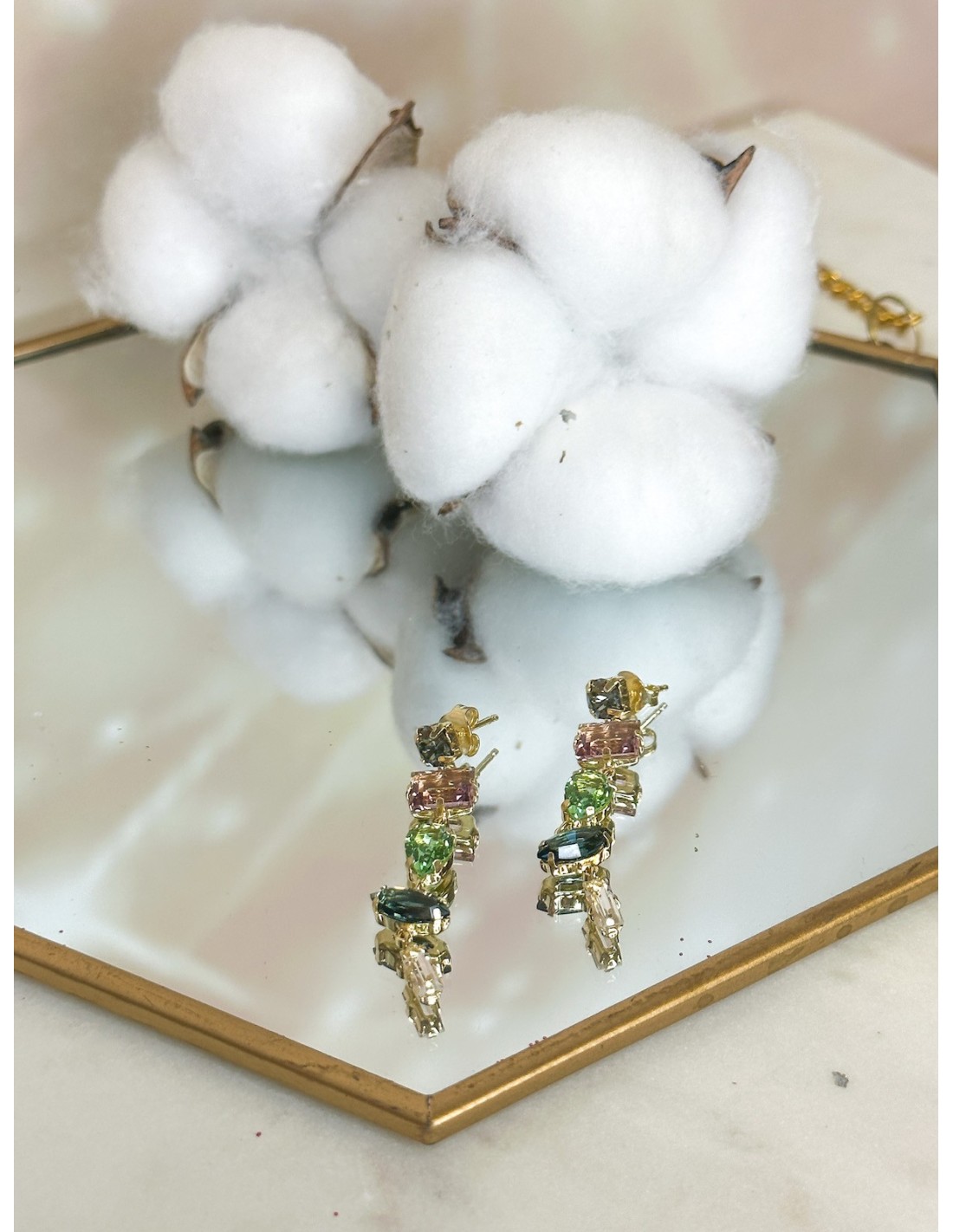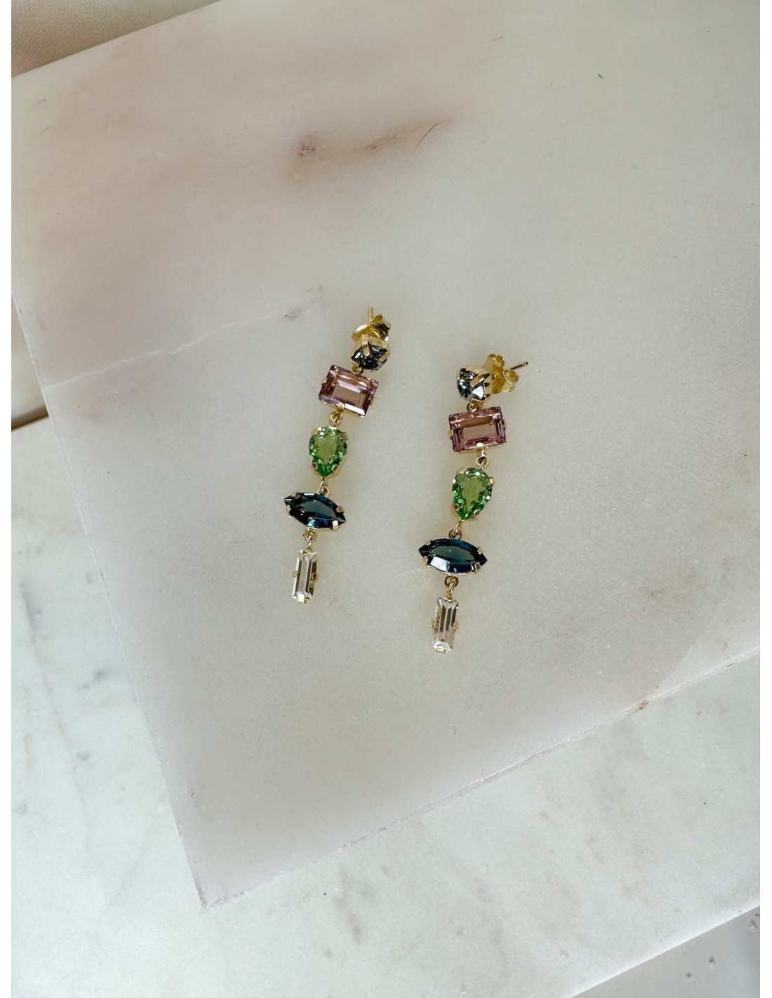 Orecchini pendenti con pietre colorate , i colori richiamano l'autunno , verde, blu, rosa antico