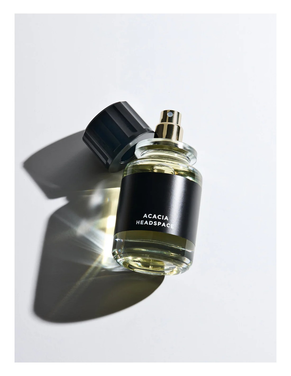 HEADSPACE Acacia è una fragranza che cattura la luce: calda come un pomeriggio dorato, intima come la carezza del sole sulla pelle.