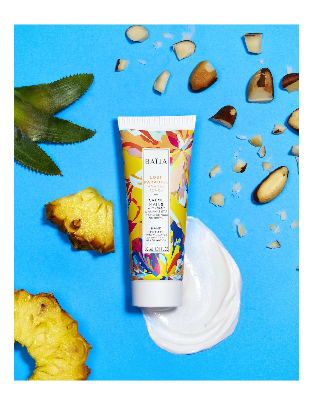 Pregiati nutrienti tra cui Cera d’Api, Estere di Jojoba e triplice blend di Oli – Girasole, Sesamo e Noci del Brasile – si fondono in una formulazione dalla texture cremosa che idrata e dona una delicata e gioiosa nota di Ananas e Fava di Tonka. Si assorbe rapidamente e non unge.