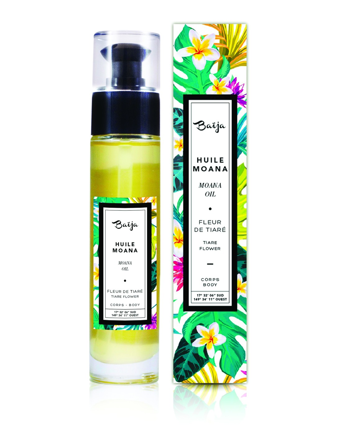 100% di ingredienti naturali per un olio corpo e capelli complesso, a base di olio di jojoba, olio di cocco, olio di buriti e olio di girasole che si fondono in un trattamento ricco di vitamine A ed E dall'efficace azione antiossidante. L'elevato contenuto di carotenoidi potenzia l'azione anti radicali liberi e risulta particolarmente indicato per riparare capelli secchi e stressati. Il lussurioso cocktail di olio di cocco e di olio buriti offre una protezione immediata. I fiori di tiare, sinonimo della linea MOANA, regalano infine una fragranza esotica che rimanda alla Polinesia francese terra d'origine di questi preziosi fiori.