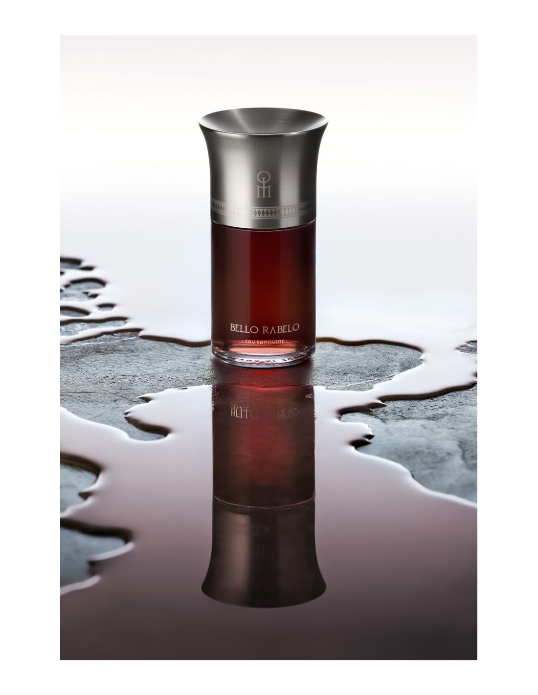 “Bloody Wood enjoys the pleasures of life and passions. A noble, distinguished character infused with truth. It is a silent love duel that releases its truth in its “juice”. Constructed as a challenge, the cold, metallic head notes are those of a sharp blade, of blood. The red juice of cherry and raspberry unites them in the heart notes, before giving way to the warmth of woody base notes from the oak barrel.