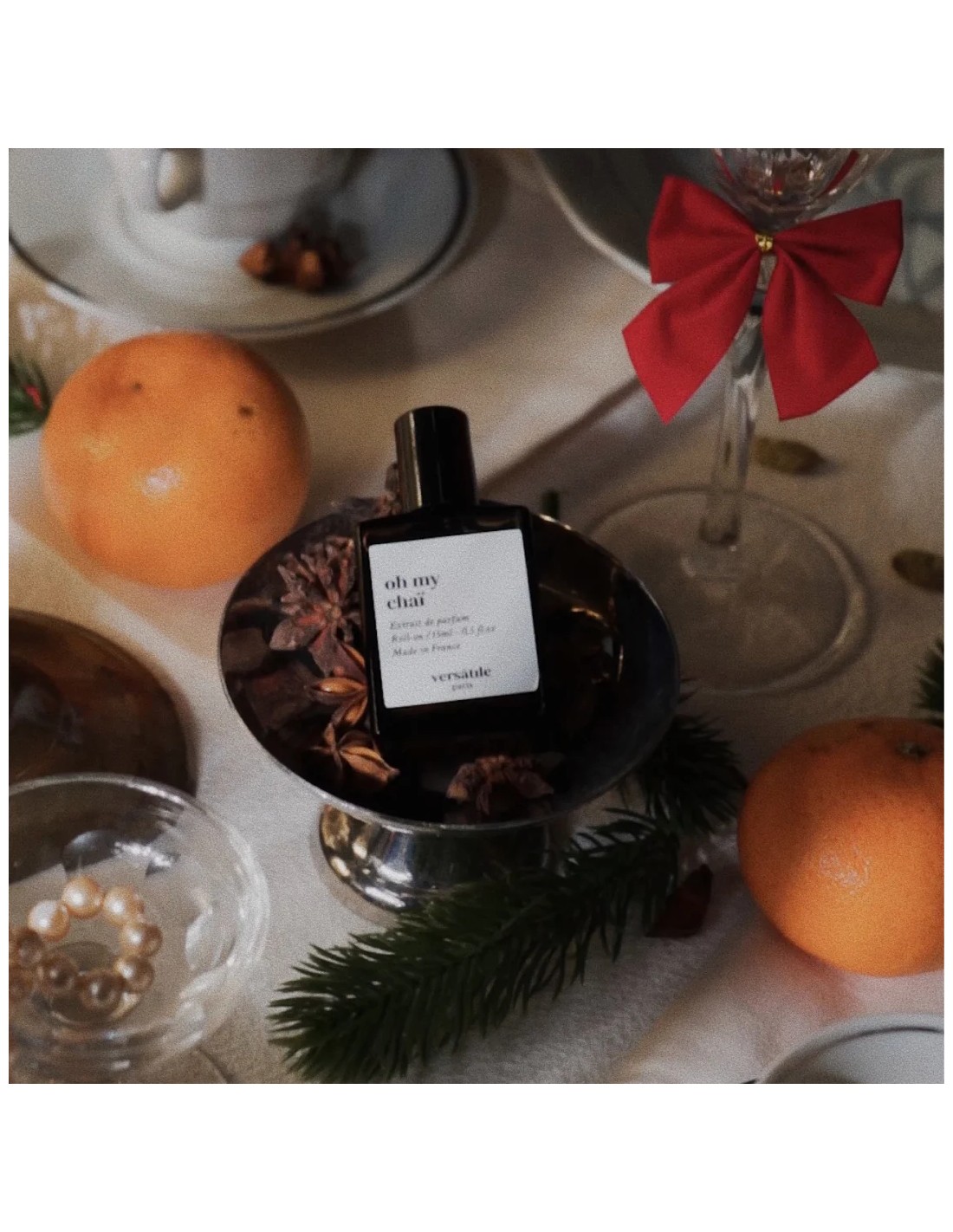 Oh My Chai Extrait Roll-On di Versatile è un profumo speziato unisex che racchiude l’essenza del Natale: chai latte bollente, clementina luminosa, spezie calde e una nota resinosa di abete accanto al camino acceso.
