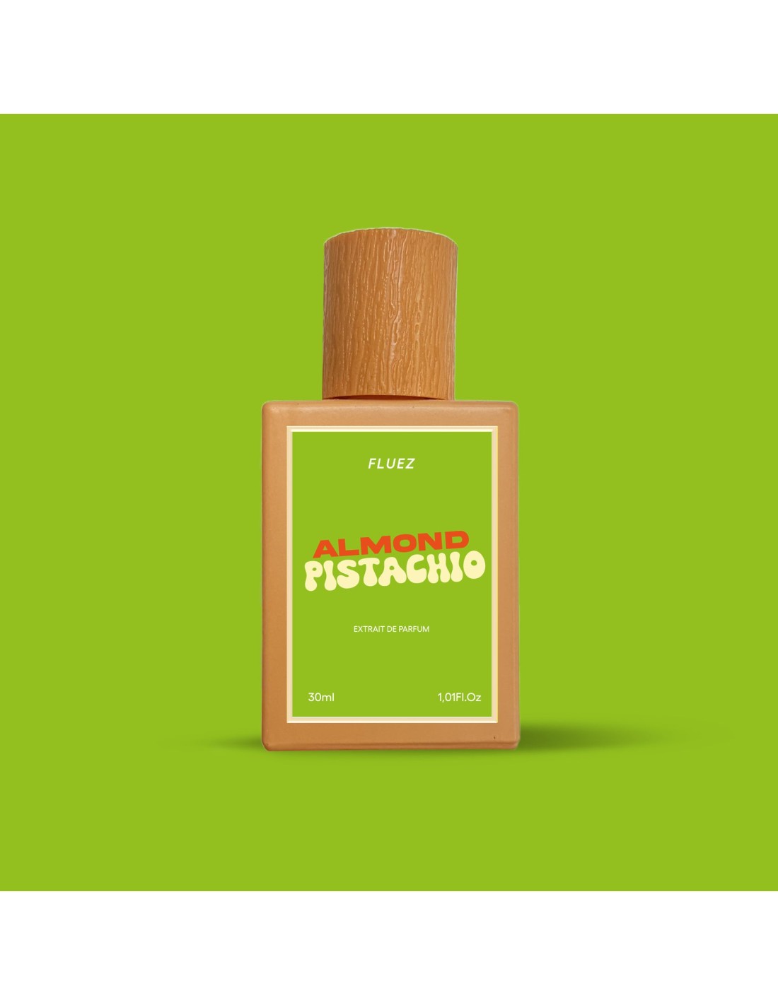 Almond Pistachio è la fragranza più golosa della linea Fluez: una fusione cremosa di mandorla e pistacchio, con cuore di marzapane, latte e un tocco di caffè che aggiunge carattere e calore. Il fondo di sandalo e ambra avvolge come una coperta morbida.