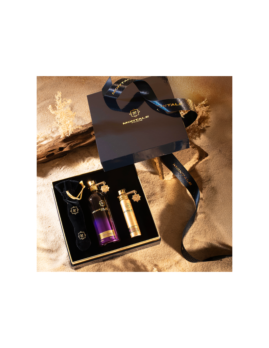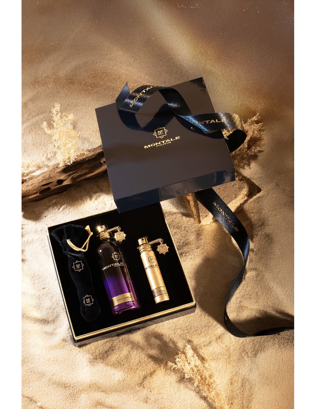 Un'elegante cofanetto firmato Montale con all'interno Dark Vanilla nel formato full size 100 ml e una travel da 20 ml della stessa fragranza.