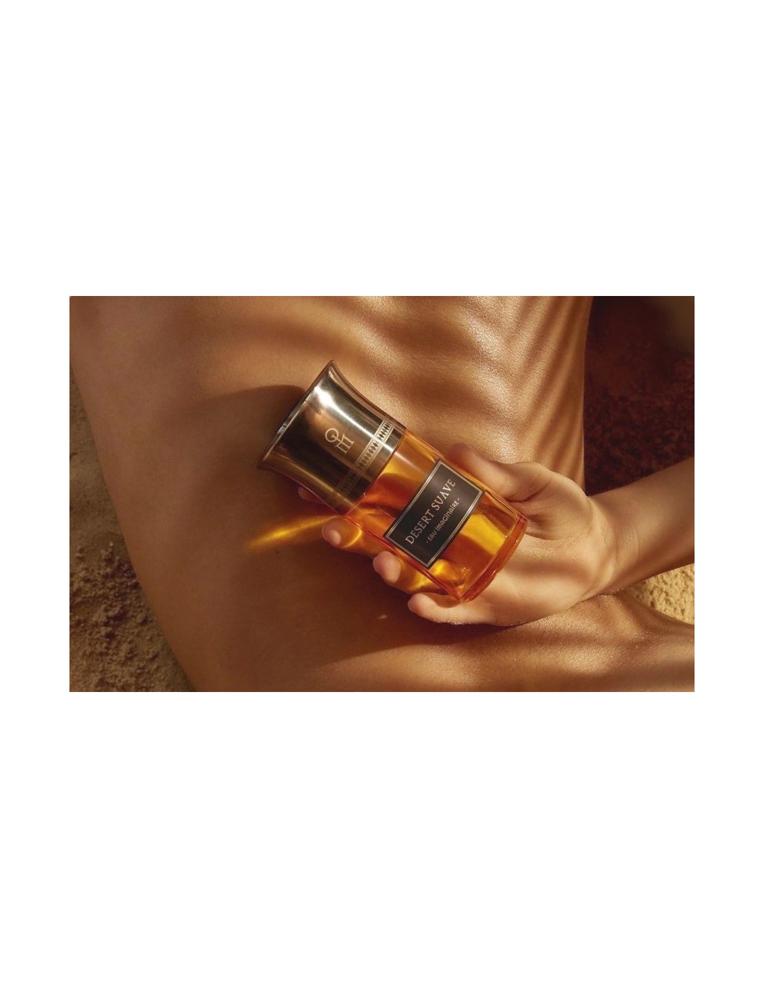 Desert Suave di Liquides Imaginaires si apre con una combinazione impetuosa di note fresche di agrumi di mandarino succoso, un po 'di cardamomo, di acqua di colonia e particolari accenti di chiodi di garofano speziati. Il cuore è pieno di eleganti note floreali, una rosa vellutata speziata di miele crea un delicato amaro/dolce, che sfuma delicatamente fino alla fine del profumo in calde nuance orientali di sesamo, fumose note legnose e ambrate, incenso divino e un resinoso legno di cremoso cedro, creando una base raffinata che indugia sulla pelle.Un che inebria i sensi, che ti immerge in una misteriosa e fertile atmosfera di un'oasi verde nel cuore del deserto, un cesto di sapori e spezie presi in prestito dai viaggiatori e pellegrini, la cui scia disturba i sensi come un incantevole miraggio che si mescola alla calura del vento, l'illusione di un'oasi sensuale bagnata da una luce carezzevole, piena di frutti succosi e carnosi. Una fragranza da desiderare.
