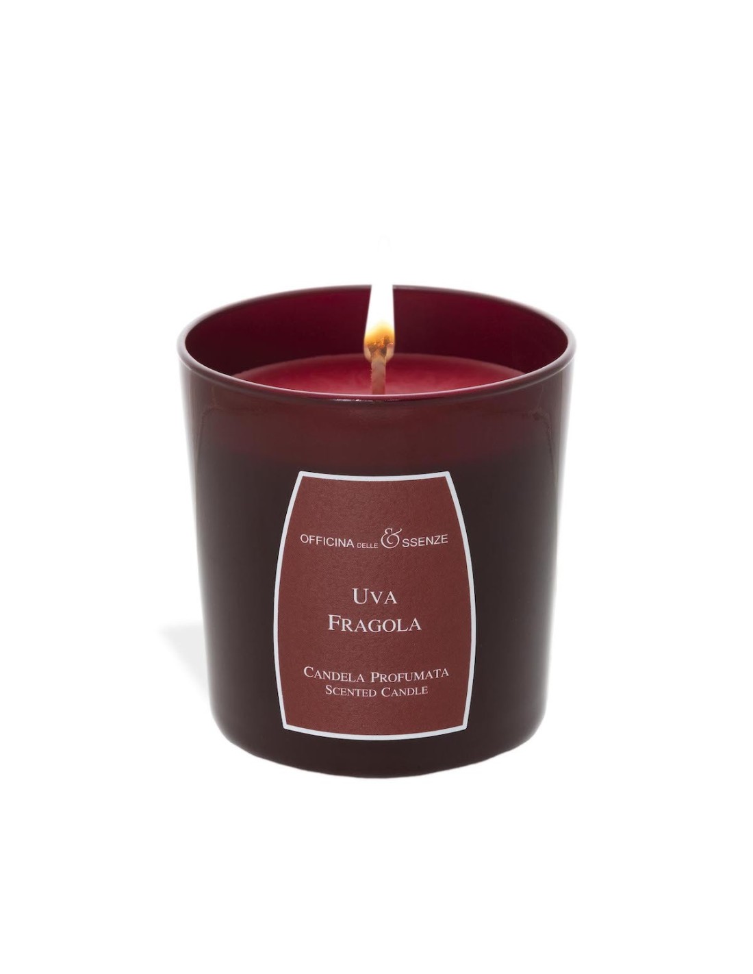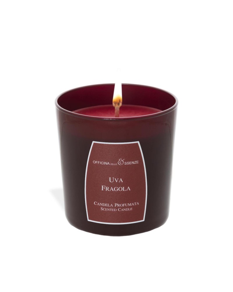 La candela profumata Uva Fragola racconta tutta la golosità di un profumo zuccherino dalle originali sfumature gourmand.